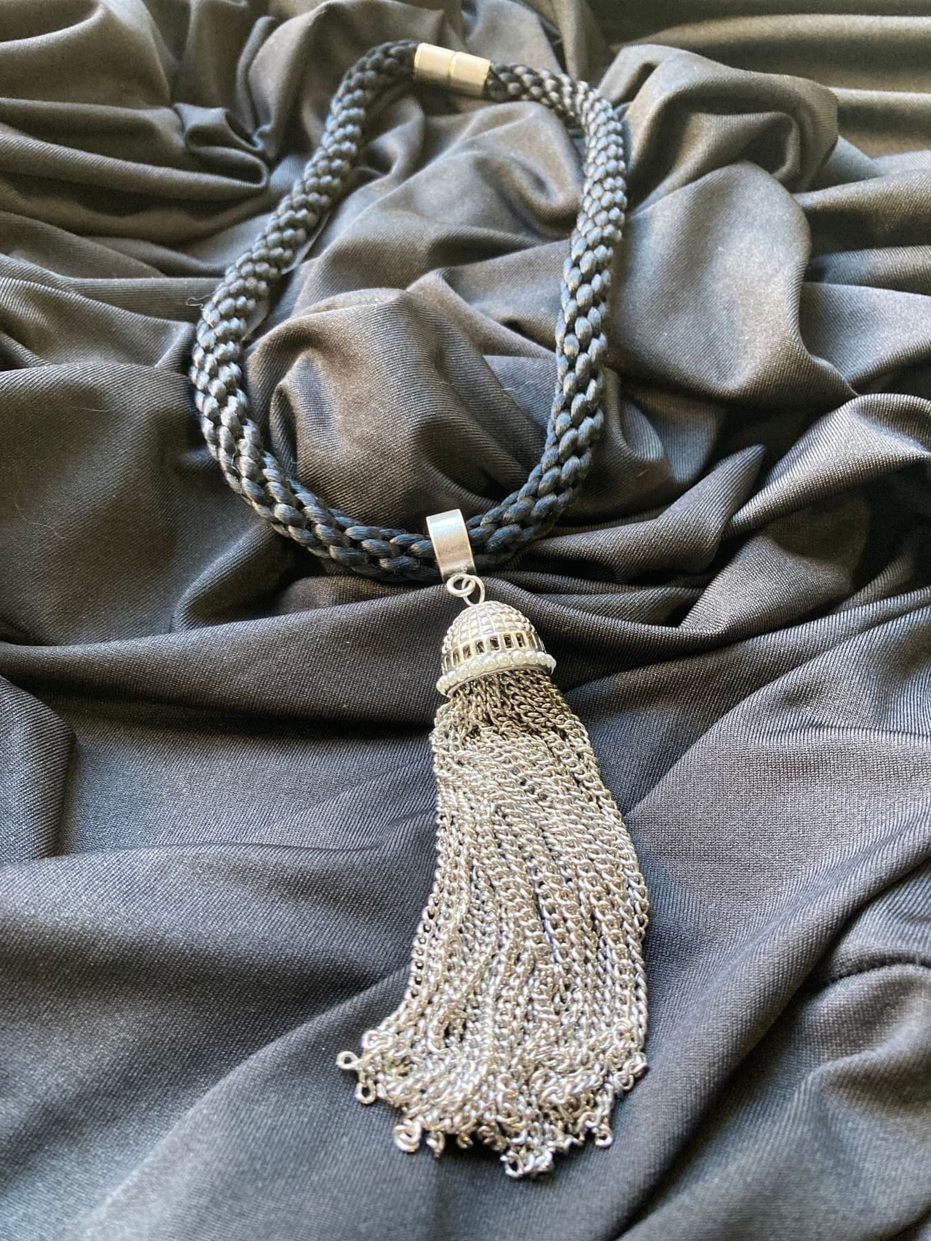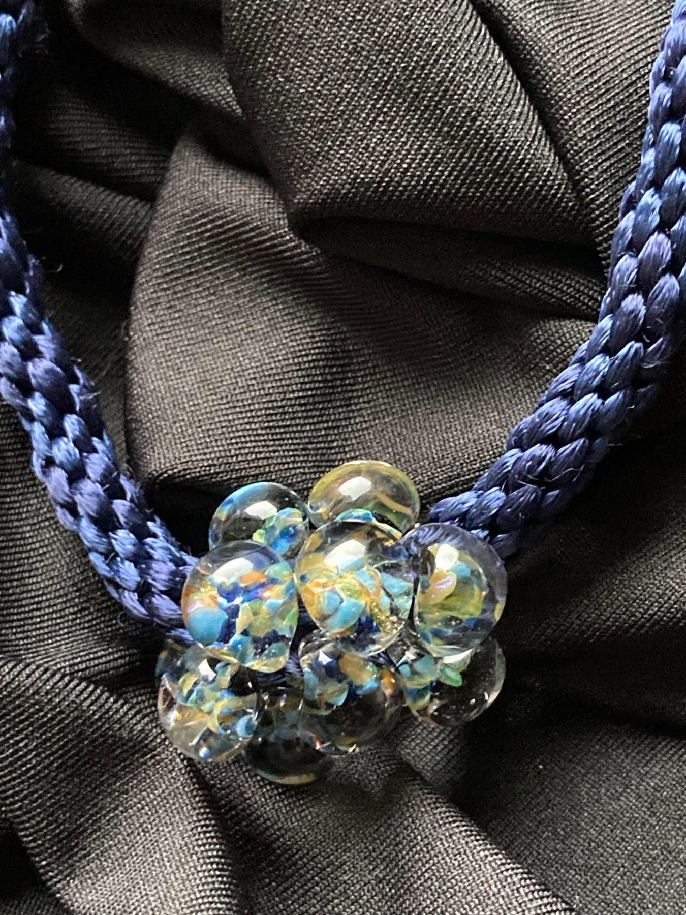 Multicolored glass bead, hand braided Kumihimo necklace.